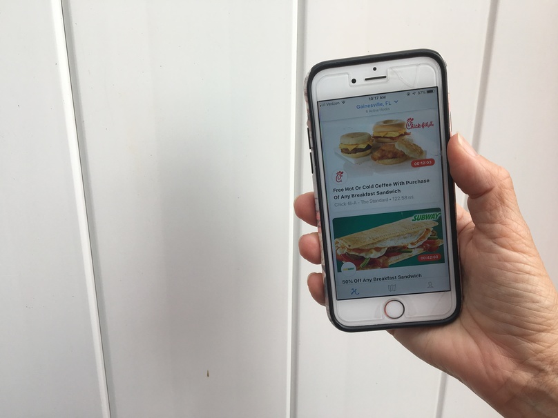 Gift Certificates and More, also known as GCM, is another free coupon app. You get free coupons to redeem at many restaurants, including popular chains like Chick-fil-A and Tijuana Flats or local chains like Relish in Gainesville. Some of the best offers I’ve experienced are free ice cream at Coldstone and 50% off everything at Hurricane BTW.