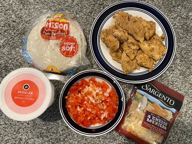 Once the chicken, vegetable and cheese have been placed on your tortilla, take a pair of tongs or spatula and fold the tortilla in half with the plain half covering the half with cheese and chicken. Cook each side of the tortilla until golden brown and crispy. Once each side of the tortilla has been cooked evenly, transfer it to a place and cut it in half. Repeat this process if you have any leftover chicken and vegetables and make more quesadillas! Serve with sour cream, salsa or sauce of your choice and enjoy!