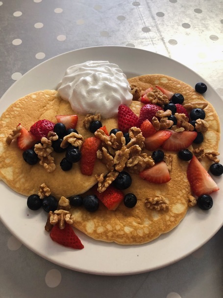 For the gluten-intolerant or the fitness junkie, the Caveman Pancakes are the perfect healthy Sunday treat. These hotcakes will satisfy your greasy diner pancake craving without the guilt. Made with almond flour, these paleo pancakes are packed with protein. They are topped with raw walnuts, strawberries, and blueberries to give the sweetness of pancake toppings without the processed junk. Served with the coconut whipped cream and a side of all-natural honey, even the guilty pleasures are made to fit the healthiest of diets.