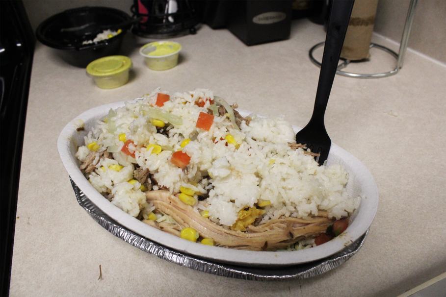 Finally, I combined two of my favorite chain’s bowls: Chipotle’s Barbacoa bowl, topped with mild salsa, corn and cheese, and Pollo Tropical’s Mojo Roast Pork bowl, topped with corn, onions and tomatoes. Together, the bowl tasted phenomenal and even better than the two dishes ever did independently. The proteins of both bowls complement each other perfectly, as they both hone in on a roasted Latin-inspired flavor. Of all the combinations, this one was definitely my favorite. The juiciness of the meat, smoothness of rice and freshness of all the ingredients provided a deliciously addictive flavor that left me pleasantly stuffed.