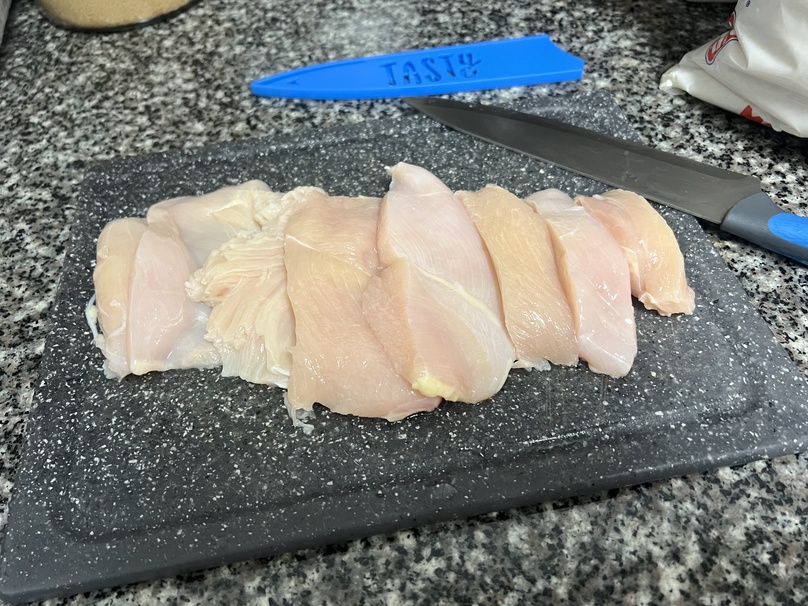 Start with chicken of your choice, this can be breast, cutlets, tenders, or thighs. Whatever you like best! You want to make sure to clean the chicken with vinegar or lime in order to get rid of bacteria.