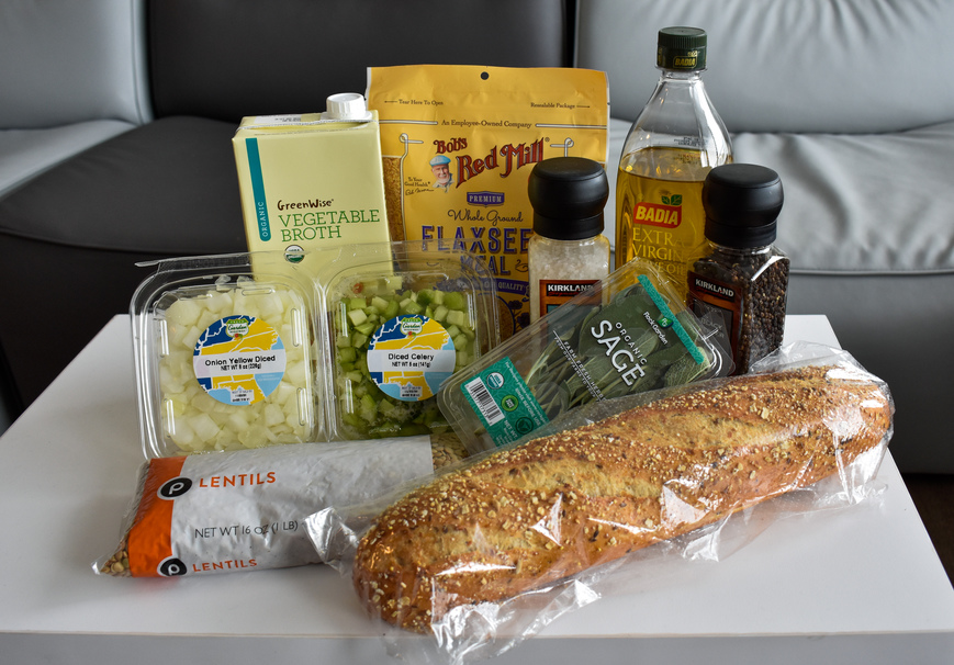 The first recipe we are going to start with is lentil stuffing. Before you start gathering your ingredients, will you need to preheat the oven to 350 degrees F and line a pan with nonstick spray.