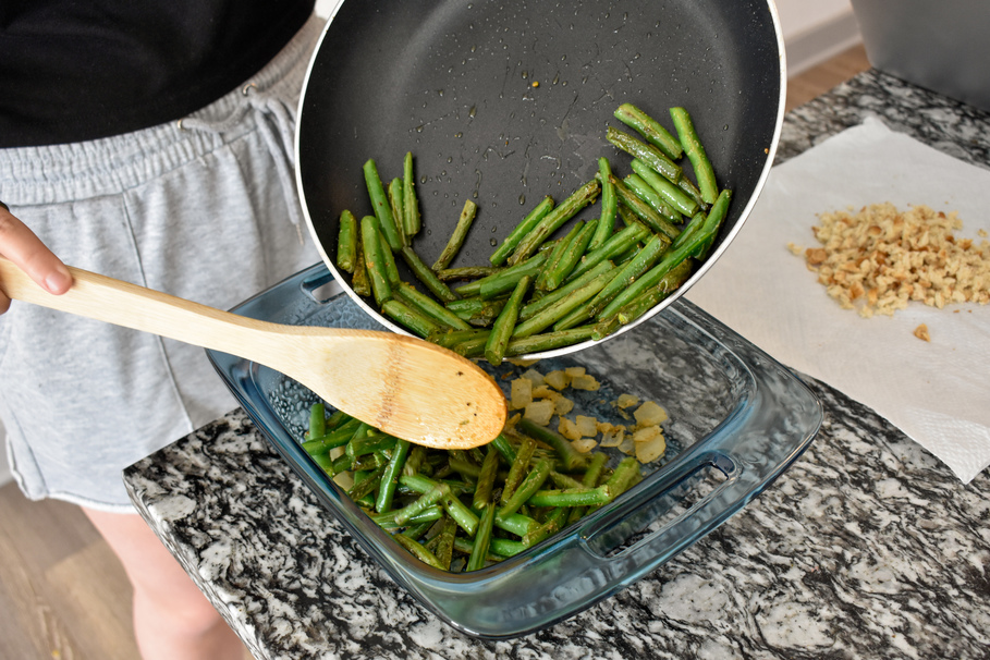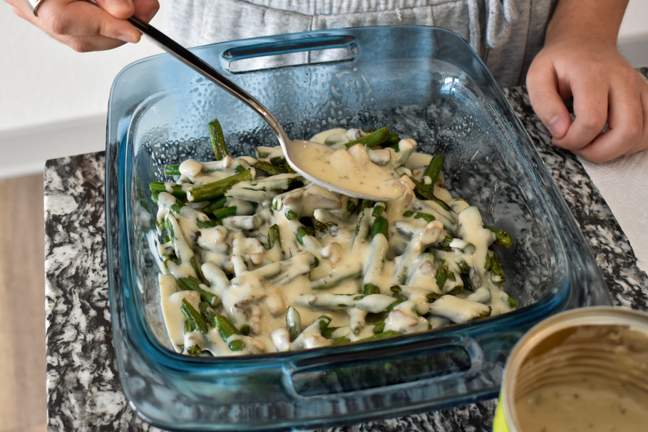 Lastly, cover the green bean casserole and bake for 30 minutes at 375 degrees, and you’re all done! Just like that, a super easy and fast recipe that all of your guests will enjoy.