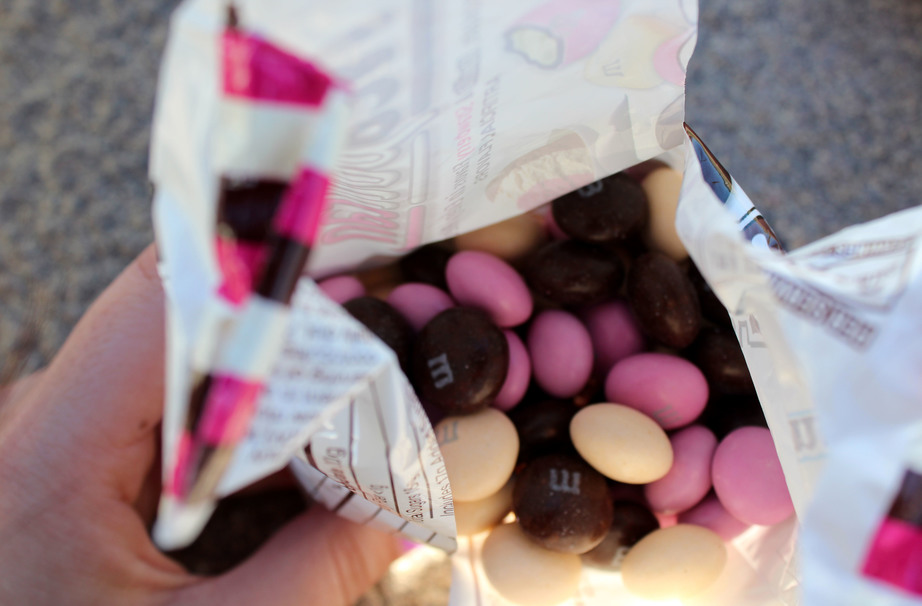 Eating candy is like plucking on potato chips: it’s easy to finish an entire bag in one sitting, regardless of the calorie count. Neapolitan M&Ms go well with pretzel sticks, Thin Mint Girl Scout cookies, and trail mix. You can also substitute them for regular M&Ms in this edgy M&M Blondie Recipe.
