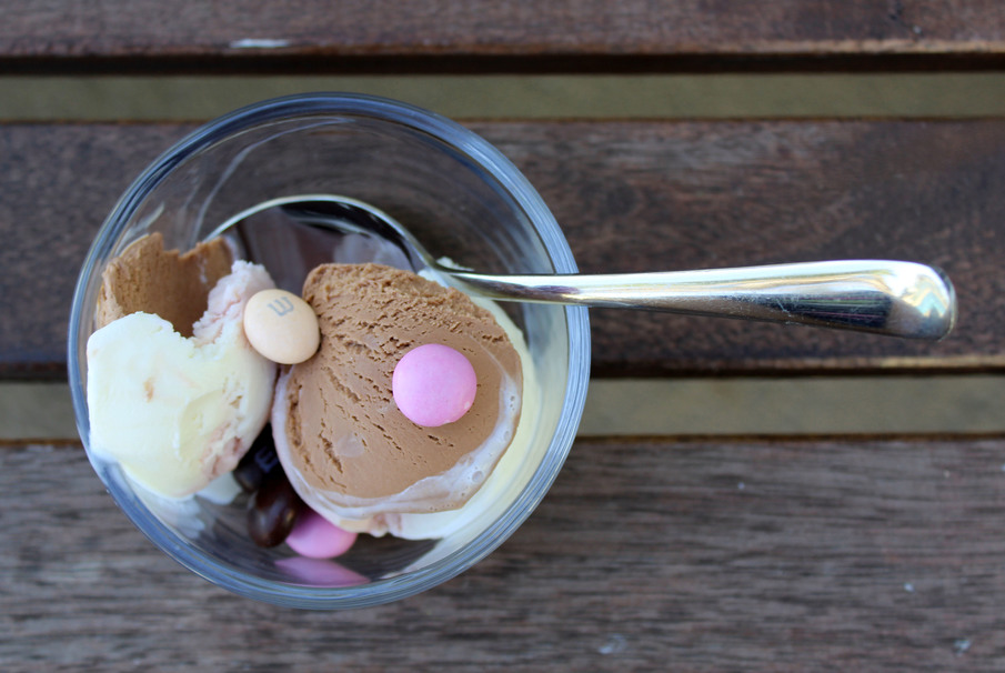 The winning combination is Neapolitan M&Ms on top of Neapolitan ice cream — overkill doesn’t matter when everything delivers a sugar high. The ice cream is a better after-dinner treat while the M&Ms are a “grab a handful” snack suited for lazy afternoons.