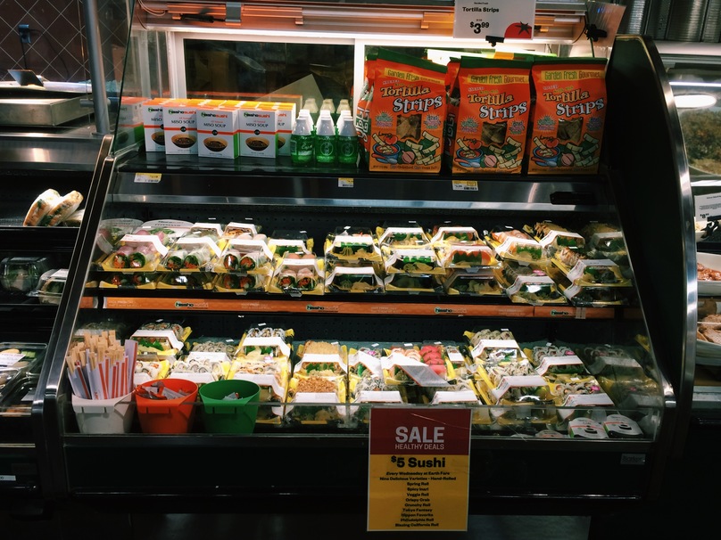 Earth Fare, an organic market on Lumpkin Street in Athens, has decided to discount their sushi meals every Wednesday. And by discount, I mean nine varieties of sushi are up for grabs at $5. Now that’s a steal.