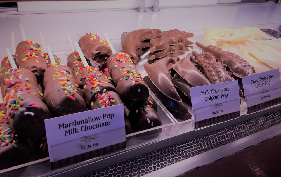 Continuing on my epic search through downtown St. Augustine for great dessert places, I stumbled across Whetstone Chocolates. As soon as I opened the door I knew I was in for quite a treat. The rich smell of chocolate bombarded me the moment I stepped inside, and looking at the counter gave me the answer. Chocolate, chocolate, and more chocolate. Key Lime Pie shells, chocolate covered marshmallows, chocolate covered bananas, fudge, hot chocolate… I could go on for days. Whetstone is a chocolate lovers ~paradise~.