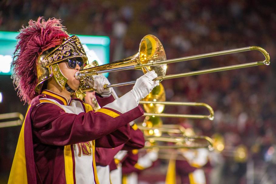 USC hands down has the best college marching band ever. Who else has multi-platinum records? We’re still confused as to who is buying marching band cds, but that’s not the point. Does the ND band play the Star Wars theme? No. Did the “Band of the Fighting Irish” perform on stage at Coachella? No. There’s no contest.