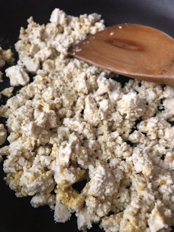 Basic Ingredients: Extra-firm tofu, nutritional yeast, and oven-roasted potatoes (sweet or regular)
