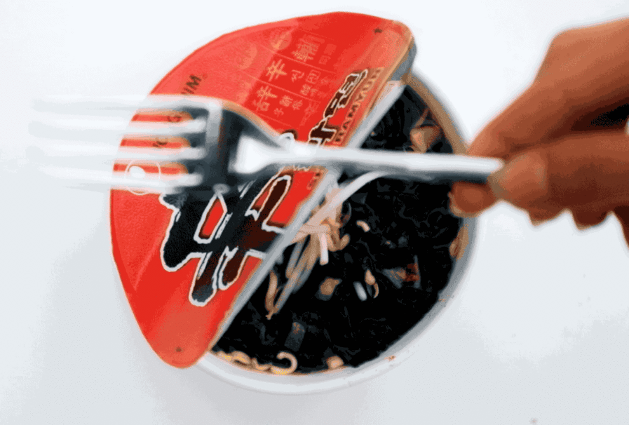 Let it sit for 2 minutes. #SpoonTip: Use your fork or a chopstick to pinch the lid of the cup so that it doesn’t flop open while you wait.