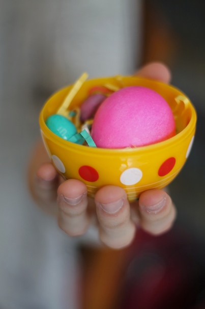 I filled the final plastic egg with confetti, a dyed egg, and a few more chocolate eggs.