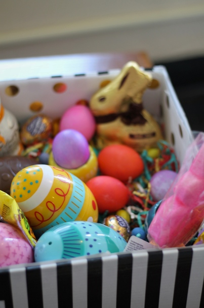 Making this Easter basket was a fun afternoon activity that brought me back to when I would totter around my background, trying to spot those brightly-colored little gems. If you need a touch of nostalgia, or simply a reason to buy a truckload of chocolate, I suggest making your own basket!